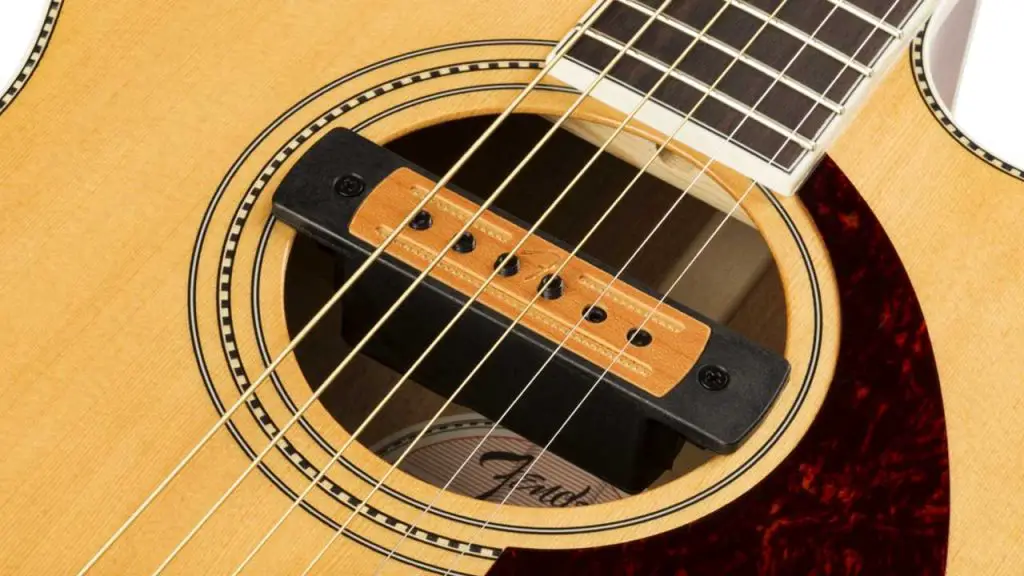 Magnetic, also known as soundhole pickup, is the most associated with electric guitars. This is because it works very similar to single-coil pickups and humbuckers. The device detects changes in the magnetic field caused by the strings’ vibration and then produces an electrical signal corresponding to the string’s frequency or pitch.